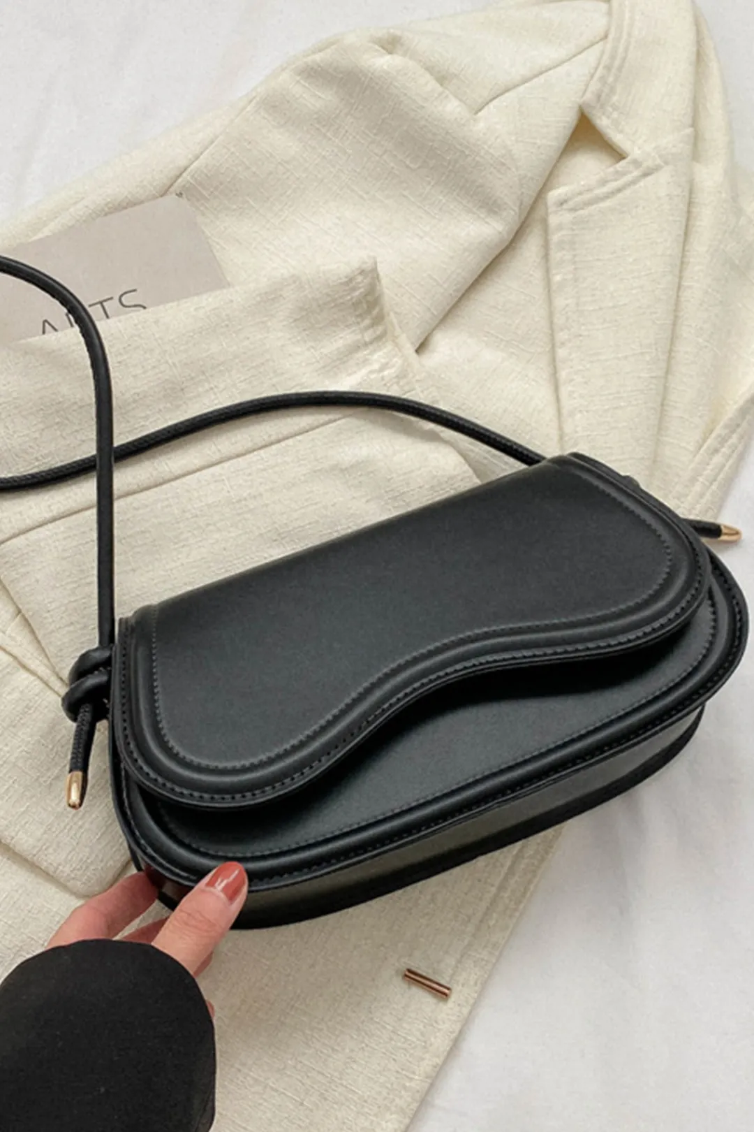 MICAS Bags|Accessories-Faux Leather Shoulder Bag BLACK