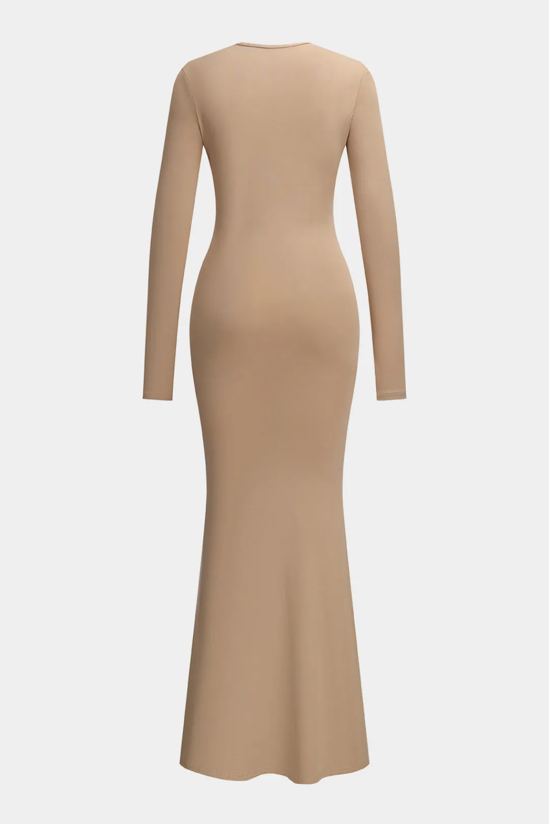 MICAS Long Sleeve Dresses|Maxi Dresses-Ruched Bow Round Neck Long Sleeve Maxi Dress KHAKI