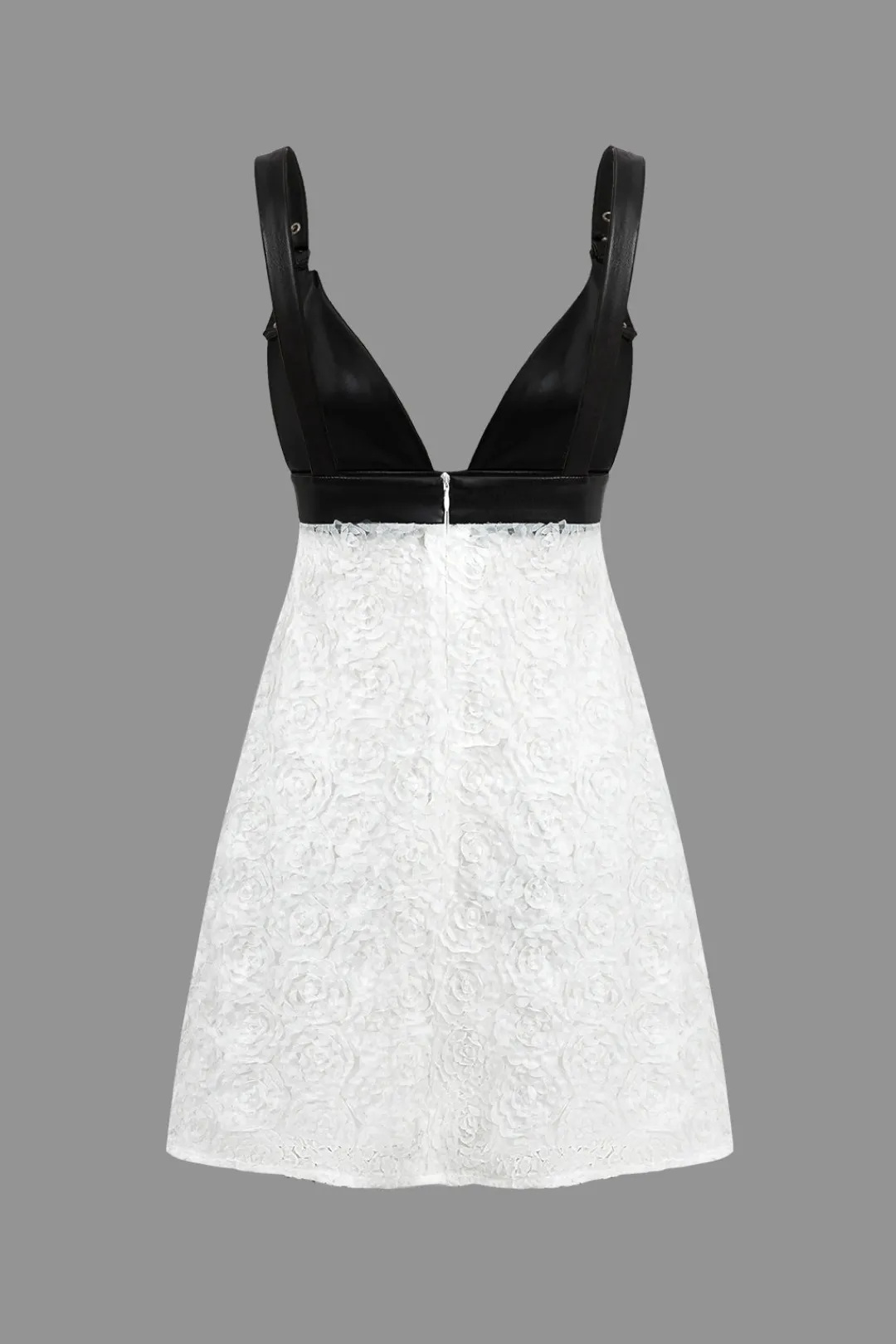 MICAS Mini Dresses-Faux Leather Appliques Sleeveless Mini Dress WHITE