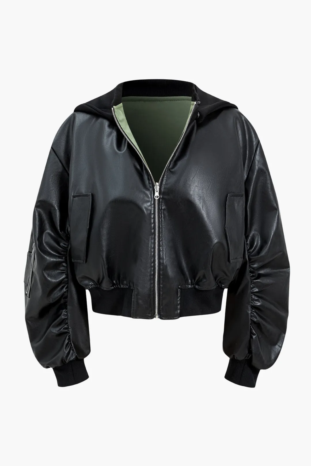 - Fabric: Faux Leather, Jersey