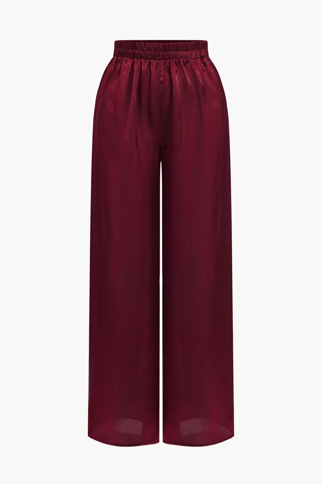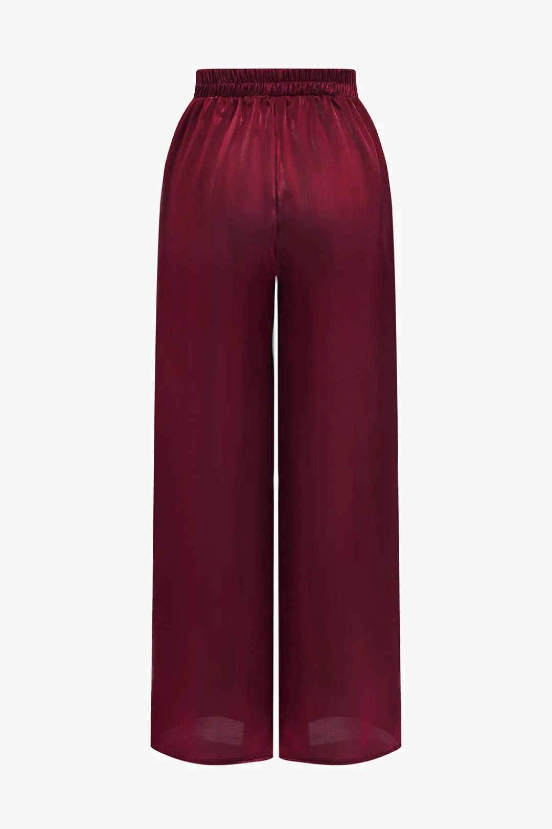 MICAS Pant Sets|Vacation Sets-Solid Asymmetrical Shirt And Trousers Set BURGUNDY