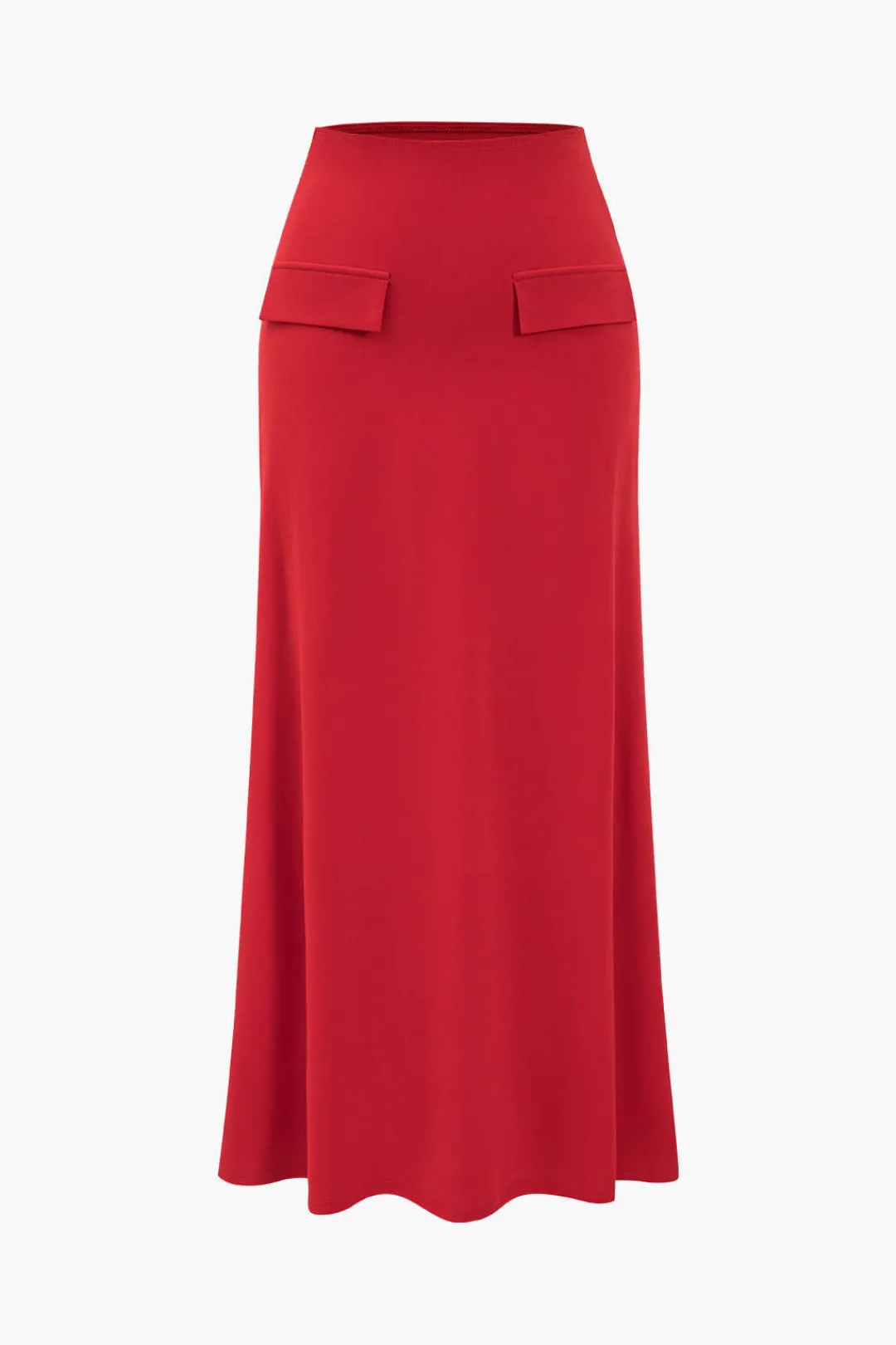 MICAS Skirt Sets-Solid Long Sleeve Top And Maxi Skirt Set CHILI