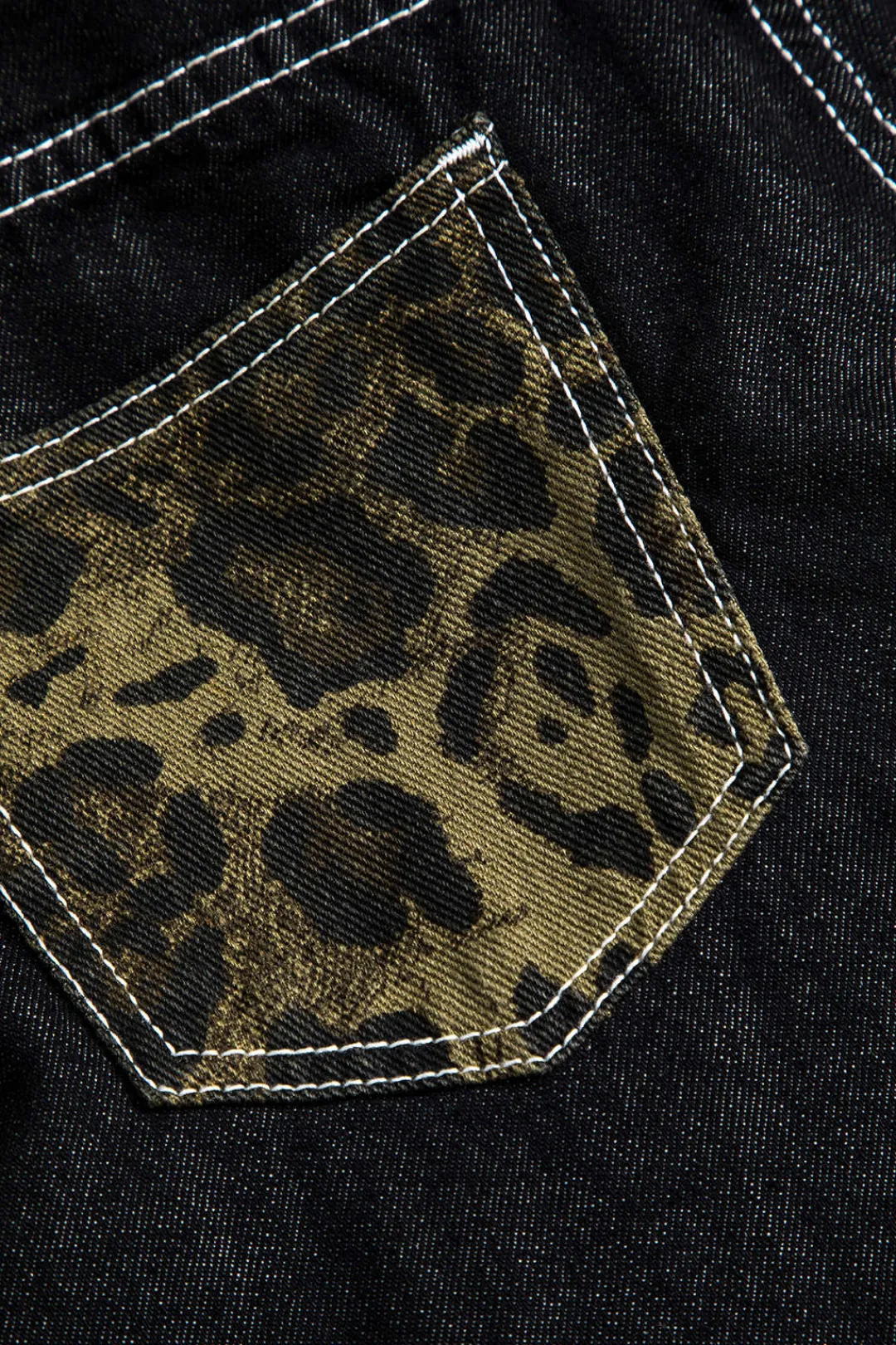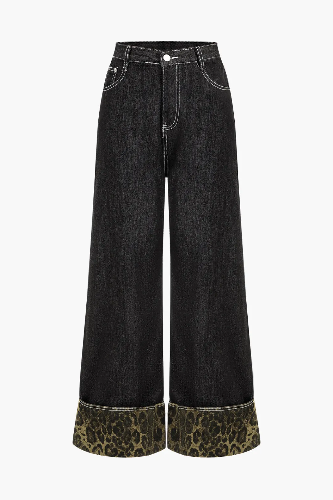 MICAS Jeans-Leopard Print Denim Patchwork Straight Leg Jeans BLACK